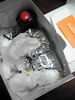 マックス2本! ありがとう妹。 蛍光灯のせいか異様に黄色く撮れましたが、もっとオレンジっぽいです。 自販機がなかなか無くて最終日にやっと買ったとか。。。オツ妹。 大切に飲むとします。 で、さっそく飲んでみる。 。。。。。。甘い!! 甘いけど、カフェオレみたいな甘さじゃなくて・・・ なんて言うんだろうね。。。 カフェオレではないコーヒーっていうの? カフェオレって牛乳を入れるんだけど牛乳ぽくないっていうか。 練乳で作ったって納得するって言えばいいのか。 レポになんなくてスミマセン。 マックスコーヒー、大好きな甘さです。 もともと甘い飲み物が好きなのでよかったです。 (↑紅茶とか引かれるくらいに砂糖を入れます;) で、はらぺこ亭でレポしたアンジュ。 4つ入り+ソース。通販は結構値段が張りますね・・・orz 中はこんな感じ! ガーゼに包まれてる!!何これ!!! ガーゼに包まれたスイーツって初めて見た!! 赤いのは小さいボトルに入ってたソースをかけました。 一口食べて 「んぁウマ―!!フワッとしてる!何これどうやって作んの!?」 と、独り言を口走りました。(一人で食べてた) ソースは無くてもいいですけど、かけた方が美味しいです。 中心あたりを食べるとカシスジャムが入ってて、 ブルーベリーみたいなプチプチした触感。 ちょっと酸っぱくて銀歯になんか電気が走りました。おぉぉ・・・! でもこれ、めっちゃ美味いよにしおかさん!! 値段ちょっと高いかなって思ったけど許す!ww ただ、続けて2コ目いったらちょっと気分悪くなっ(ry) 半分食べたので、もう半分はまた後食べます(笑) 通販したい方はこちら↓ http://www.platino.jp/shopping/anju/index.html (アンジュ・プラチノ/2コ800円~+梱包/送料等) テンション高めに女王様の食べ物レポートをお送りいたしました。 あまりレポートになってないけど。。。
