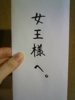 どんなお仕事なのか気になるところですが、 テレビ番組のロケですかね・・・早く見たいです。(気が早い) お饅頭は今日東京に出発するハズですので にしおかさんの手元には海外から帰ってきてからですね。 賞味期限は大丈夫だと思う・・・ 一緒に送る手紙をお菓子屋のおばちゃんに渡したんだけど デカデカと「女王様へ。」って筆ペンで書かれた白い封筒を 渡すのが若干恥ずかしかったです。 なんかおばちゃんに対する「果たし状」みたいになってました。 全然果たしてないし。 女王様自身のおっぺけ体験と比べれば全然ですね。 パンツ落とすとか月食とか。。。。。 みどりいろ。とか。。。。。。。。 ほんとはこのブログ、 「みどりいろ」ってタイトルになる予定だったんだ。。。(そんな裏話いらんってか) ていうかね。 女王様・・・もう、、、どこらへんが"ドS"なのか分からない。(キャラぶっ壊し) スミマセンスミマセン。。。営業妨害で訴えないでください。 でも、キャラとか関係なくそんなにしおかさんが大好きです。笑 海外気をつけていってらっしゃ~い♪ あ、ロッピーでチケット取りに行かなきゃな~と。 その後、DVDを見ようと思います。 表でにしおかさんがどこにいるかな~と探したら、 口と目が全開の「雄たけび顔」だったからビックリした。 (いつもやってるのに。。。)